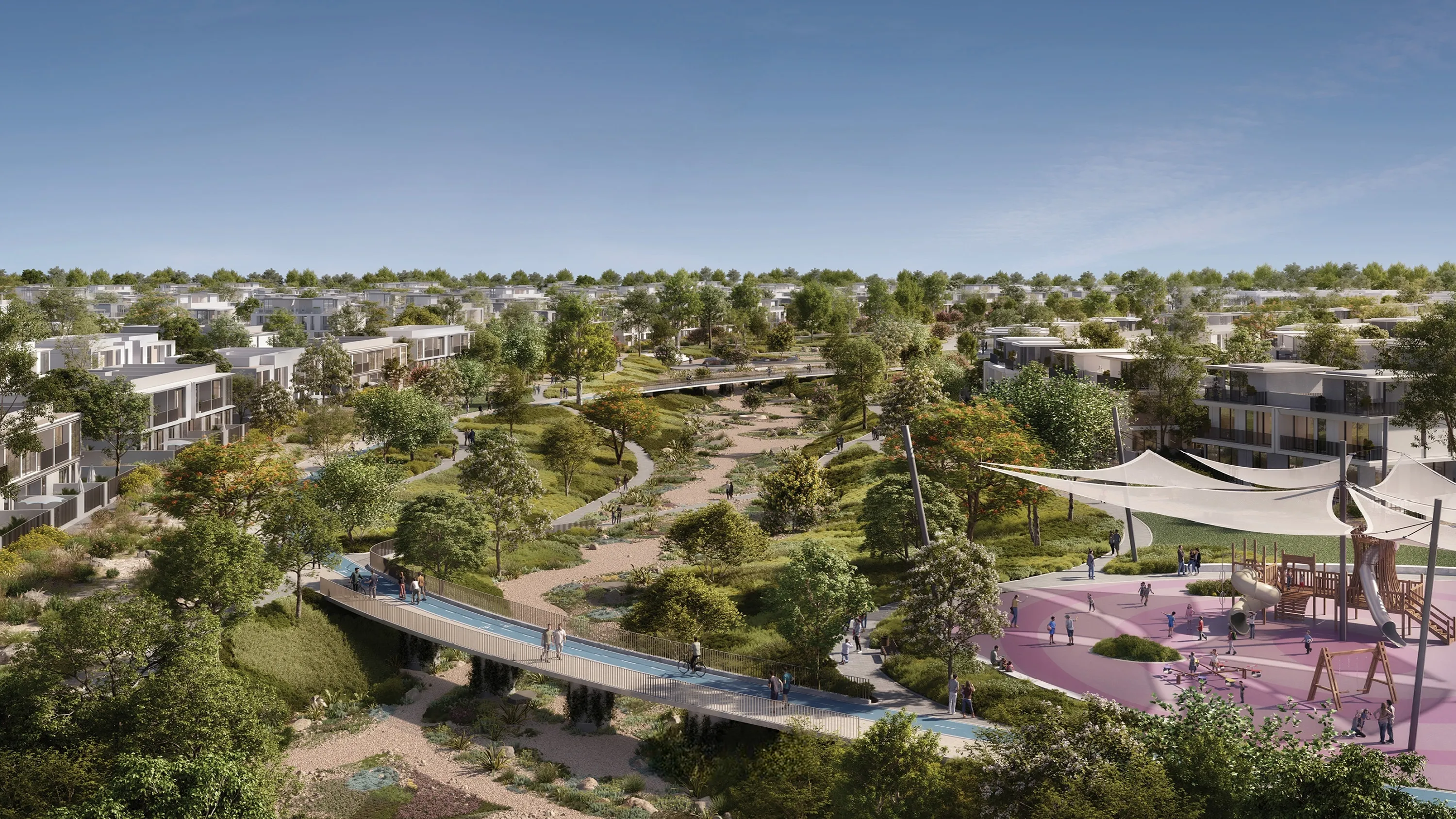 Discover a premium family-friendly luxury residential living lifestyle surrounded by pockets of green and glistening sand. Explore a sustainable and wellness-centric neighborhood, populated by several leisure and entertainment facilities.